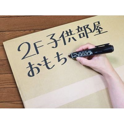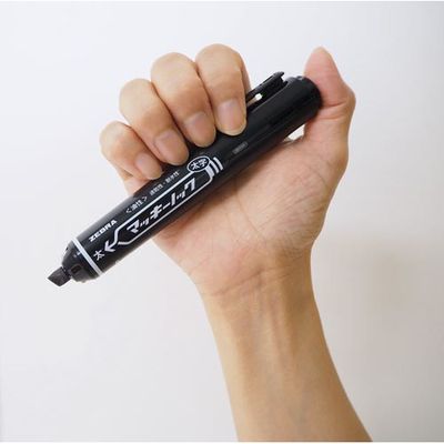 片手で使えて太い文字が素早く書けるノック式油性マーカー。キャップ紛失の心配がありません。速乾性・耐水性がある油性インクなので、紙・布・ガラス・プラスチック・金属・ビニール類など幅広く利用できます。