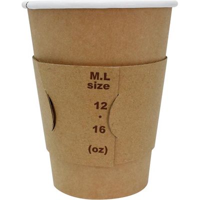 ホット飲料の入った紙コップに最適!8、12、16オンスの紙コップに対応したクラフト紙のカップスリーブ。