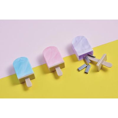 アイスキャンディーをイメージしたホッチキスの針ケース。アイスキャンディーのバー先端部分がマグネットで、ホッチキス針やクリップが取り出しやすい!クリップやアクセサリーなどの小物収納にも活躍します。