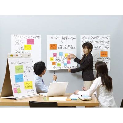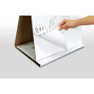 画板サイズの台紙つきパッド。ボードのように書き込むことが出来、1枚ずつはがして自由に掲示できるので、ミーティングやワークショップにおすすめです。持ち運びに便利なテーブルトップタイプ。