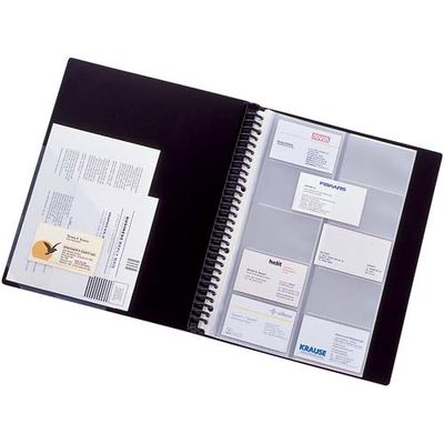 透明ポケットなので、両面印刷された名刺の管理に便利です。表紙裏面に三角ポケット付きです。