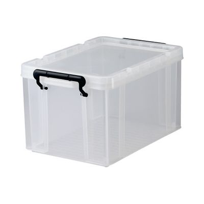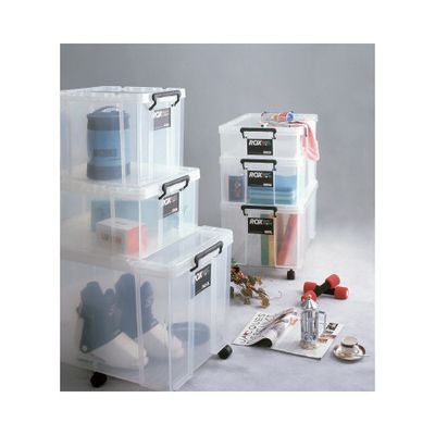 ロック式のフタ付きで丈夫な樹脂製ボックス。スタッキングもできて便利!キャスター(別売)を取り付ければ移動もラク!ロープを掛けられる溝がフタに付属。