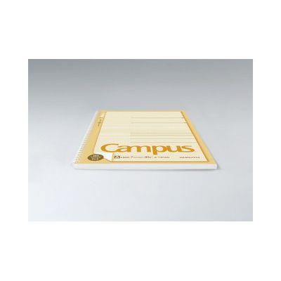 キャンパスツインリングノート。B5サイズの資料が貼れてはみ出さない新規格ノート。四隅にあるLマークを目印にプリントが貼れます。