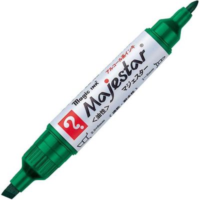 ペン先がポリエステル使用で書き味なめらか、筆記線の割れもしにくい。配送物の仕分けなどに活躍する太・細両用油性マーカー。
