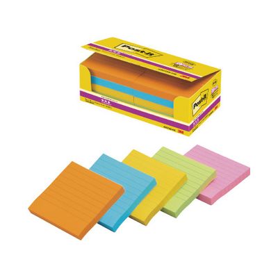 つきにくかった樹脂面にもしっかり貼れて、きれいにはがせる強粘着タイプのポストイット。長文メモや箇条書きに便利な罫線入り。見落とし防止に役立つネオンカラーアソート。たっぷり入ってお得なエコノパック。