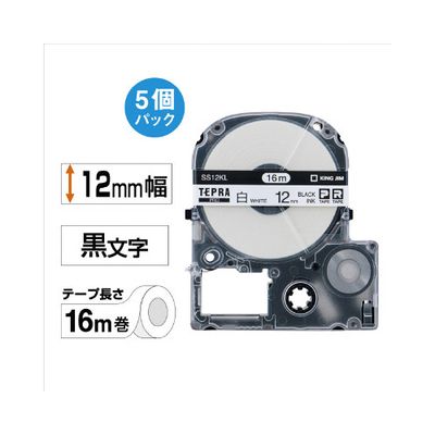 テプラ PROテープ ロング白色黒字12mm×5 SS12KL-5P