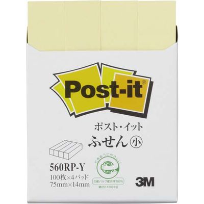 ポストイット 再生紙ふせん 75×14mm イエロー4冊 560RP-Y