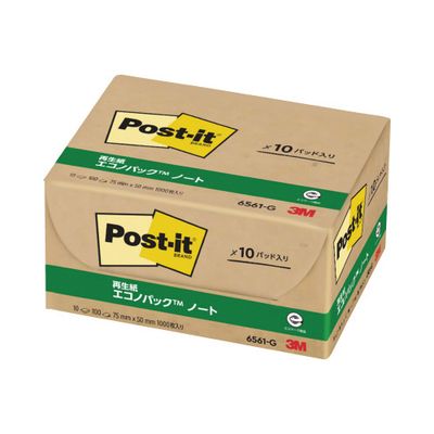 ポストイット 再生紙ノート75×50mm 緑10冊 6561-G