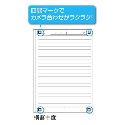 ノートをスマホで撮って簡単整理・自動送信!アクションマーカーで撮影時に自動でメール送信やタグ付けなどの動作が可能!コクヨの定番、無線とじノートタイプ。四隅マークでカメラ合わせがラクラク!
