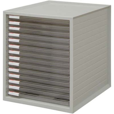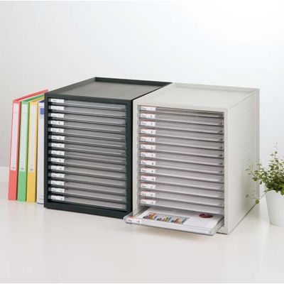 A4サイズの書類の収納に便利な超浅型14段タイプのレターケースです。天板は小物が落ちにくい形状。ゴム足付きで滑りにくい!A4クリヤーホルダーが収納できます。