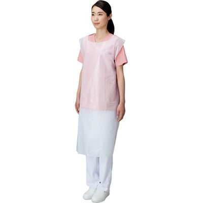 感染から守る使い捨てエプロン。防水性に優れたポリエチレンフィルム使用。素早く脱着できるように首部分にミシン目があります。