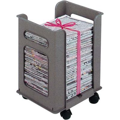 約1ヶ月分の新聞を収納できます。A4サイズ大の雑誌も収納でき、紐通しの溝が底面について梱包も便利。キャスター付きで移動もラクラク。