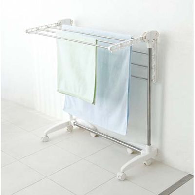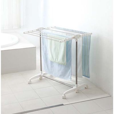 | 大判バスタオルがしっかり干せるサイズ。脚、ハンガー部分が折りたためるので使いたいときだけ片面で使うことも可能。コンパクトに収納、省スペースでも干せます。 |