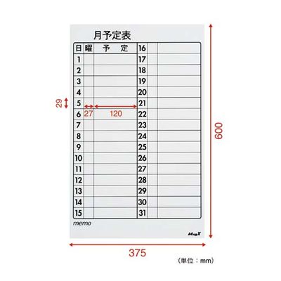 マグネットボードシート月間予定表600×375mm MSVP-3760M