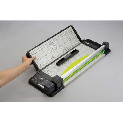 集光式紙押さえ板により裁断位置がわかりやすく正確な裁断が可能です。コンパクトに収納できる盤面折りたたみ式です。