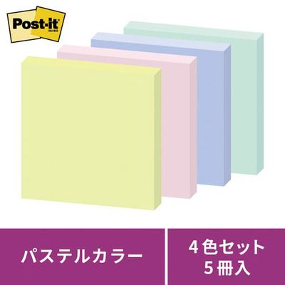 つきにくかった樹脂面にもしっかり貼れて、きれいにはがせる強粘着タイプのポストイット。ちょっと詳しい伝言、情報整理などに便利な、定番の正方形サイズ。文字が見やすいパステルカラー。混色5冊パック。