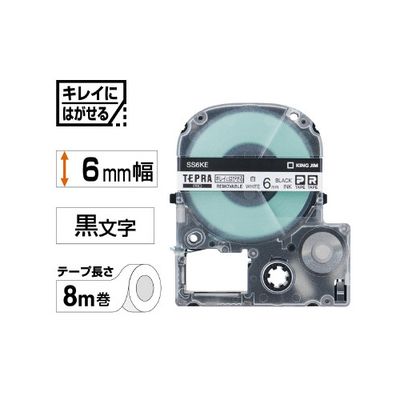 テプラPROテープ はがせる 白ラベル黒字 6mm SS6KE