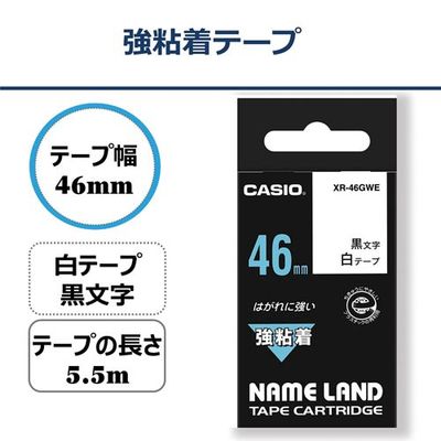 ネームランド 強粘着白色テープ 46mm 黒文字 XR-46GWE