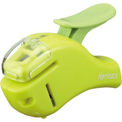 使いやすさにこだわったコンパクトボディ。新設計刃により手の負担を約20%軽減(5枚とじる時、当社比)。針補給の必要、針混入の心配なし。とじた際に外れにくい矢印刃。開閉式確認窓、ストラップ穴つき。