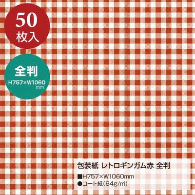 包装紙 レトロギンガム赤 全判 50枚