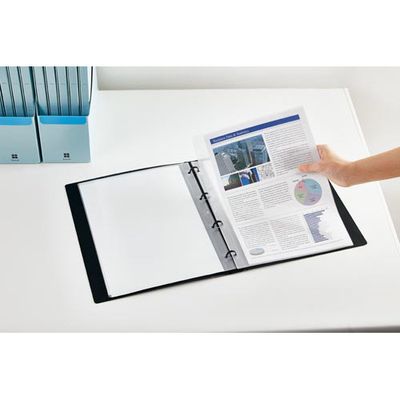 ファイルのリング開閉なしにリフィルが簡単に取り付け取り外しができます。リフィルは市販の2穴リングファイルにも使用する事ができます。又、クリアホルダーの様に単体で使用する事が可能です。