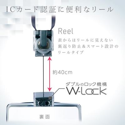 未来的なデザインフォルムのIC認証用伸縮リールとカードケース。ダブルのロック機構で大切なICカードを落としにくい。
