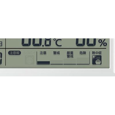 環境目安表示(熱中症は4段階表示)、注意報と警告音のモニター付、電子音アラーム(ダブルアラーム)、電波サーチ、電波オフ、スヌーズ、アラームオートストップ、残照機能ライト