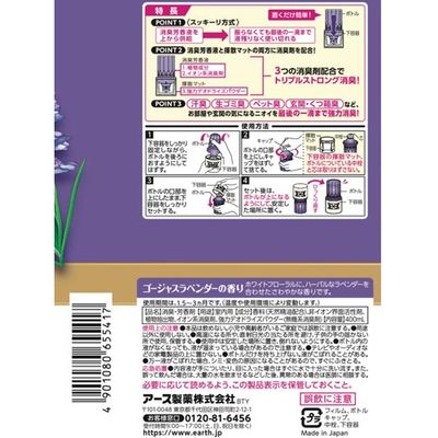 消臭芳香液を上から供給するスッキーリ方式だから、液残りがなく、振らなくても最後の一滴まで消臭芳香します。また、Wの消臭成分(植物成分、イオン系消臭剤)配合でお部屋の嫌なニオイをしっかり消臭します。