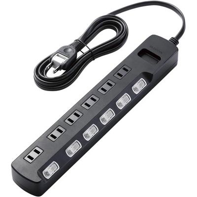 延長コード 電源タップ 2.5m 6個口 個別スイッチ 雷ガード ほこり防止 黒