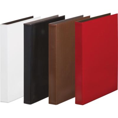 見開き・閲覧が容易な高級感が漂うリングファイル。開閉方法は、リングを指で軽くあけるリング式とじ具。