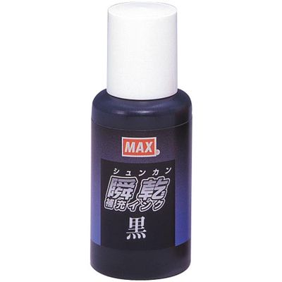 約3秒で「サラリ」とインクが乾くので書類や手を汚しません。マックスの瞬乾スタンプ台専用補充インク。