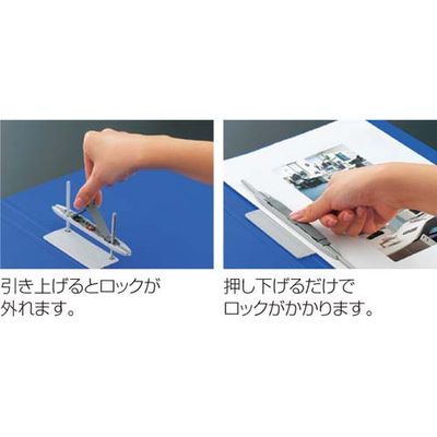 とじ具の開閉は上げ下げするだけ!引き上げるとロックが外れ、押し下げるだけでロックがかかります。収容枚数に応じた背幅調節が可能なPP製のレターファイル。