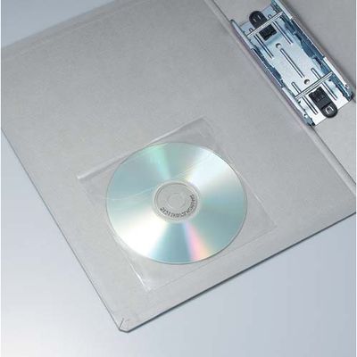 裏面に糊がついたタック式メディアポケット。ファイルに貼ればCDなどを収容することができ、保管にも最適。フラップ付きなので収容物の紛失の恐れがありません。