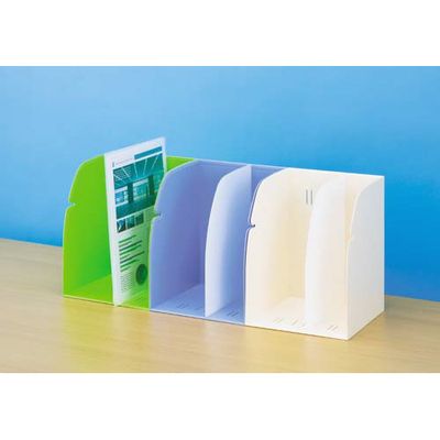 縦横使用可能なブックスタンドです。連結用のジョイントを使えば連結が可能です。底部と背部にファイルやフォルダーがすべりにくい工夫をしています。