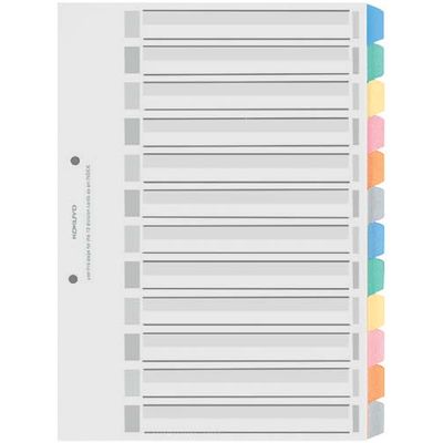 カラー仕切カード透明PP製 A4縦 12山 1組 シキ-P80