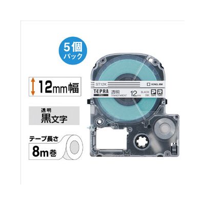 テプラ PROテープ エコ 透明12mm黒文字×5 ST12K-5P