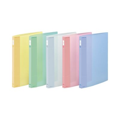 軽い力でワンタッチ操作できる、使いやすい樹脂製とじ具です。フック式のとじ具構造で、書類をしっかりとキープ。明るく清潔感のある5色の透明PP表紙。とじ具はD型リング状で、書類の閲覧もスムーズです。