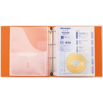 取扱説明書や保証書・CD-ROMなどを一緒に保管できるファイル。ポケットの追加・差し替えが簡単なリング式。
