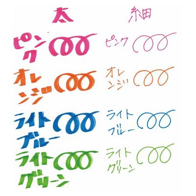 細字丸芯:約1.5から2.0mm、太字角芯:約6mm