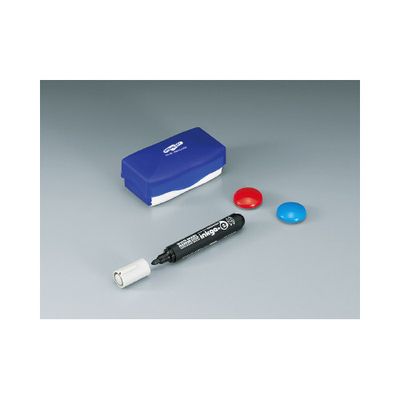 イレーザー1個、ホワイトボードマーカー(黒)1本、マグネット(赤・青)各1個、吊り下げ金具