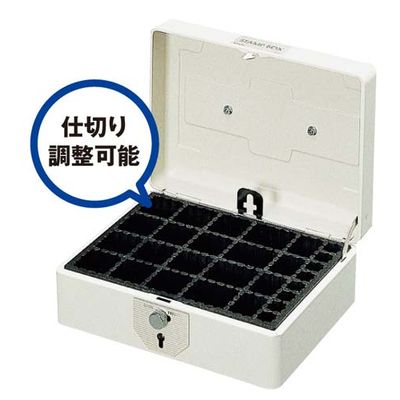 スチールで丈夫!鍵付きの印箱。出し入れがしやすくなる傾斜装置がついています。取っ手がつまみやすいデザインを採用。