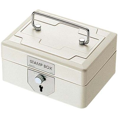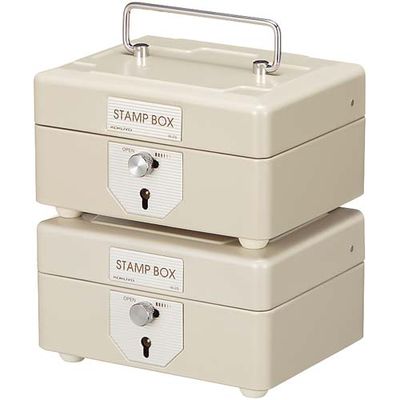 スチールで丈夫!鍵付きの印箱。出し入れがしやすくなる傾斜装置がついています。取っ手がつまみやすいデザインを採用。