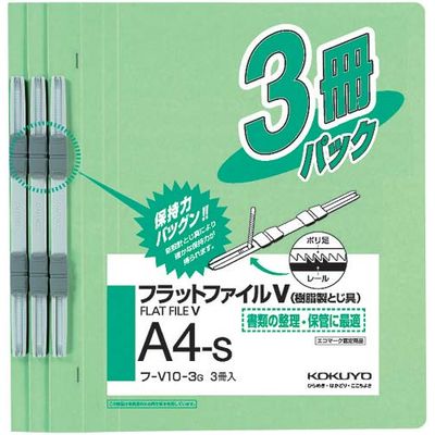 フラットファイルV樹脂とじ具 A4縦 緑 3冊 フ-V10-3G