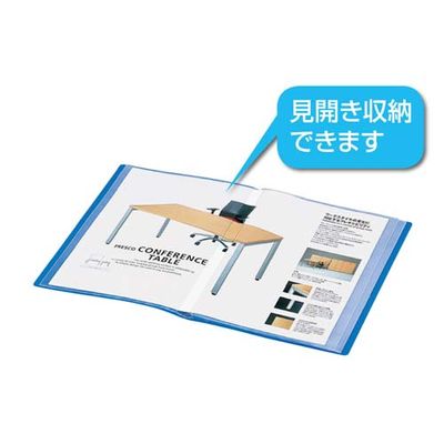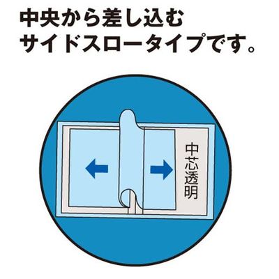 見開き収納可能。中央差し込みタイプの固定式クリヤーブック。