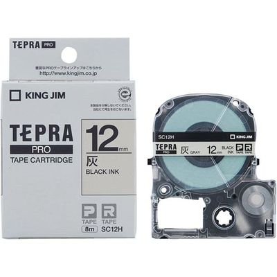 テプラ PROテープ パステル灰ラベル12mm黒字 SC12H