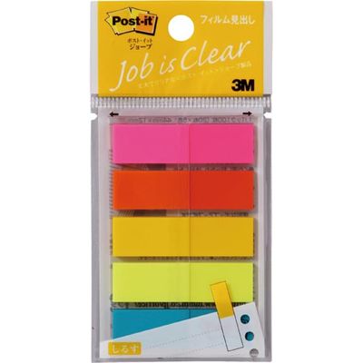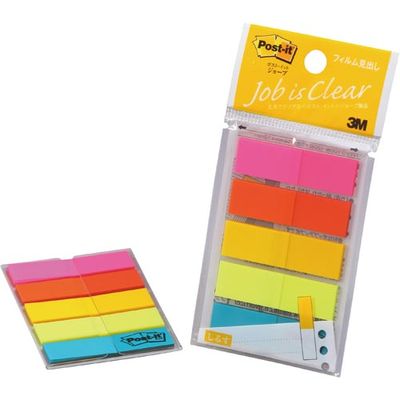 1枚ずつ連続して取り出せるポップアップ式です。全面がカラータイプで、マークや見出しに最適なフィルムふせんです。蛍光カラー5色セット。