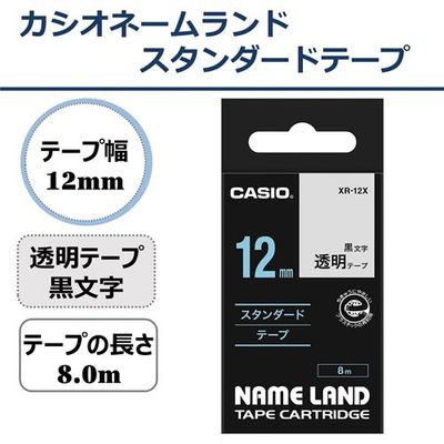 ネームランド 透明テープ 12mm 黒文字 XR-12X