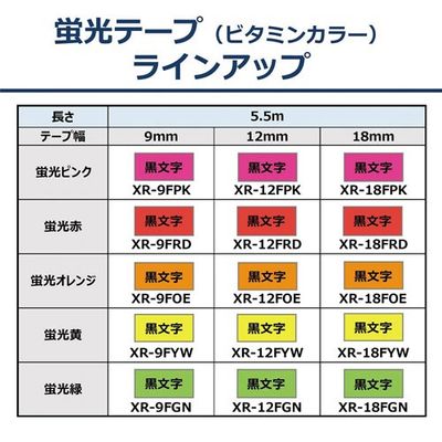 ネームランド 蛍光橙色テープ 18mm 黒文字 XR-18FOE