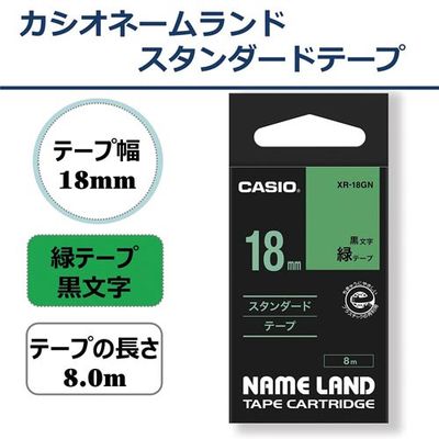 ネームランド 緑色テープ 18mm 黒文字 XR-18GN