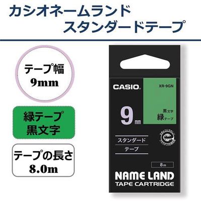 ネームランド 緑色テープ 9mm 黒文字 XR-9GN